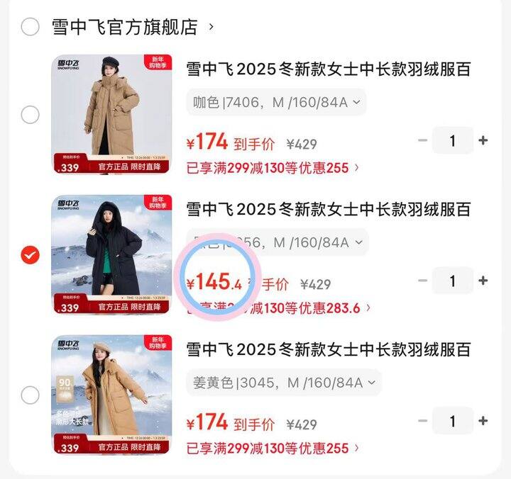 𝟏𝟒𝟓💰雪中飞女中长款羽绒服
