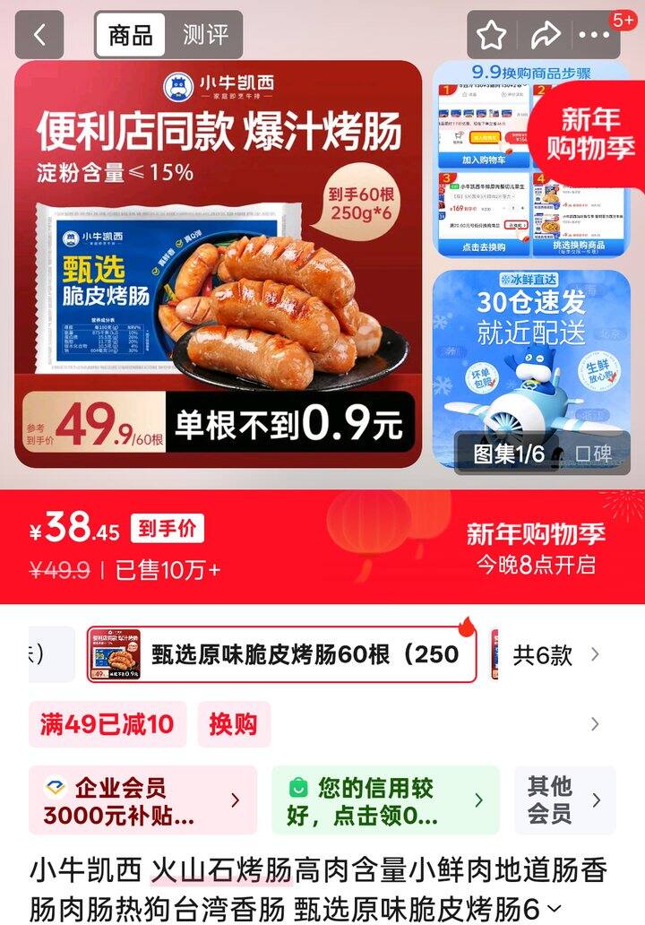 小牛凯西 火山石烤肠250g*6袋