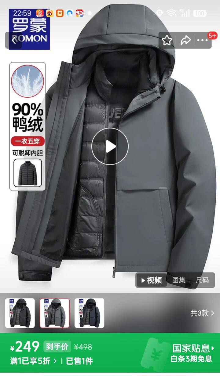 ❺可拆卸帽羽绒服【𝟐𝟐𝟗.𝟓】