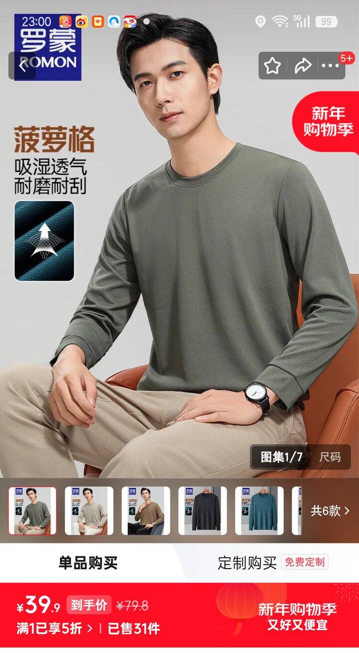 ❷华夫格长袖衫【39.9】