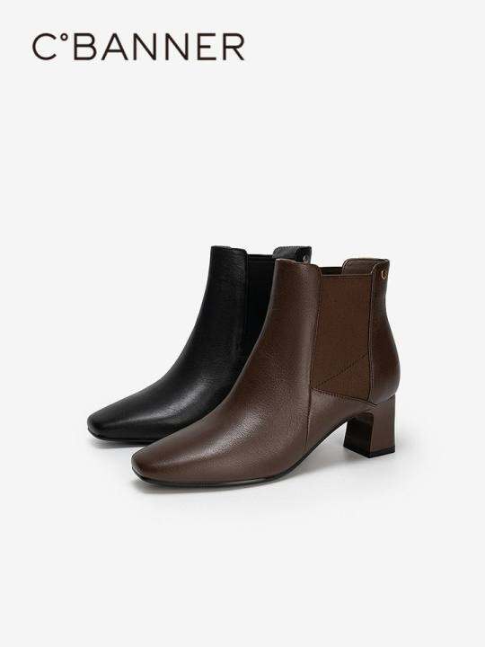 【上新】千百度粗高跟羊皮弹力袜靴女2025冬季新款时装靴短靴子
