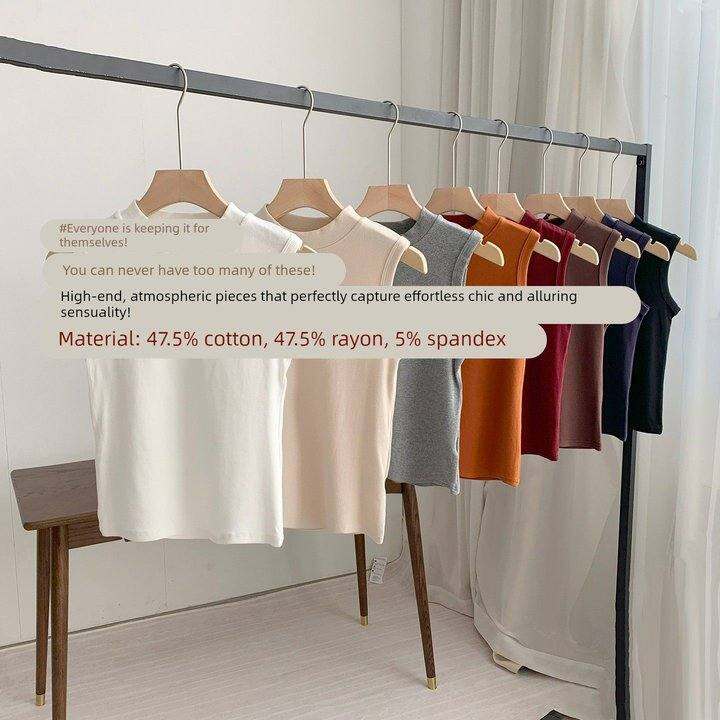 【Chunxi】@氛围高智感~舒适高弹力半高领背心正肩无袖内搭叠穿女