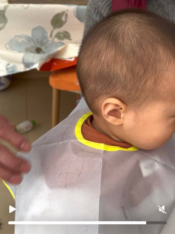 宝宝头发太长了(哈哈出生以来没剪过,一共就长了这么长[哭笑]),婴儿理发器最后买了如山小白珠,今天爸爸动手、爷爷指导、奶奶抱着,给剃了头发,剃的还蛮成功的,没有坑坑洼洼。理发器他还有点害怕,刚开始放餐椅上剪要哭,只能大人抱着了,我给开了个jojo的动画片看,硬控了一会[哭笑]头顶刘海还留着,所以剪完不觉得变化太大,ps小时候抱睡的枕骨凸,现在看也不咋明显了,以前有点白焦虑了