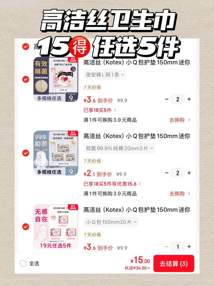 现在任选五件才💰15!每个月消耗品遇到好价直接闭眼拍!
