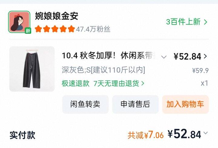 这家店是看路口推荐的,买到手感觉挺薄的,洗了好多次都没有起球,主要是他的裤长很适合小个子,后面又买了一条其他颜色,最近又买了一条加绒的。