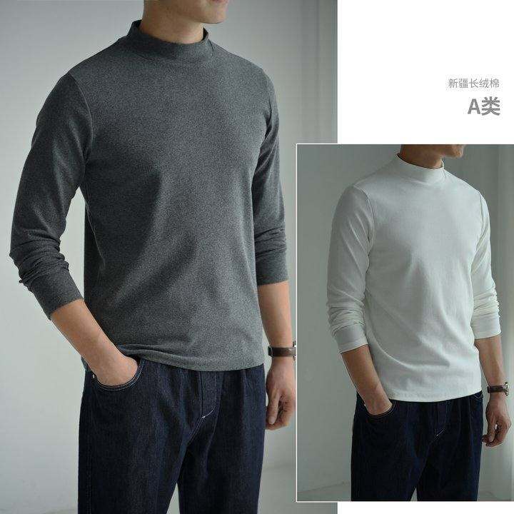 A类 精梳棉 男士磨毛半高领长袖打底纯色纯棉秋冬款山东网店