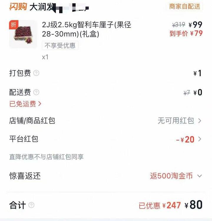 淘宝闪购-部分地区大润发车厘子2J2.5kg💰93,