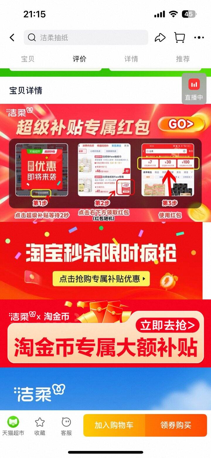 ❶ 纸巾加车,下拉详情页点超级bu贴(如图2)