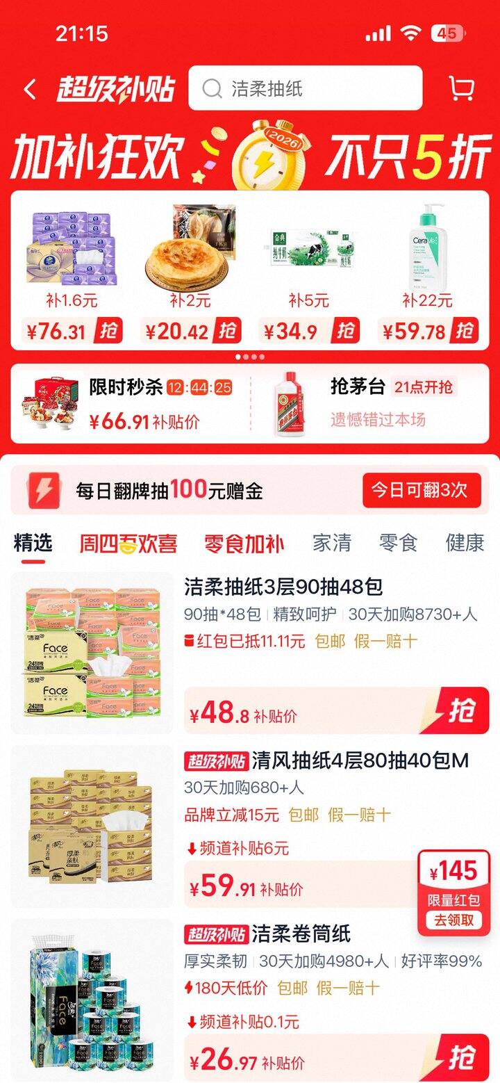洁柔抽纸90抽💰0.83/包