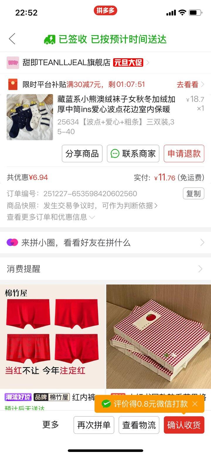 粉色袜子质量很好,毛线的,实体店估计要二十块一双了。