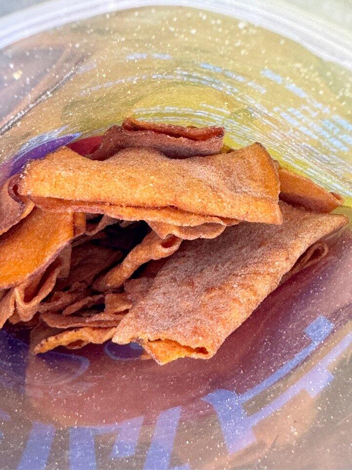 开箱就被香到!甘梅地瓜片厚薄均匀,咬下去咔嚓酥脆,梅香很浓郁,红薯本身的甜很纯粹,裹上的甘梅粉不抢味,酥脆度在线,不软塌不发硬,追剧、摸鱼、下午茶都适配,甜中带酸解腻又开胃,完全不齁甜,吃完手指都要嗦干净,性价比直接拉满~