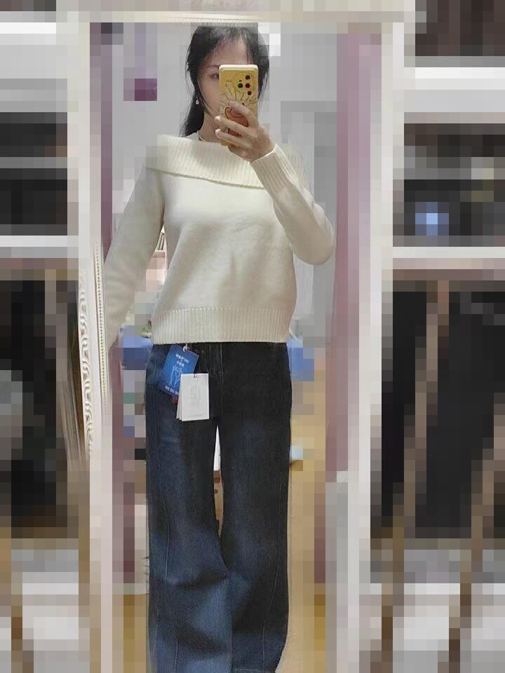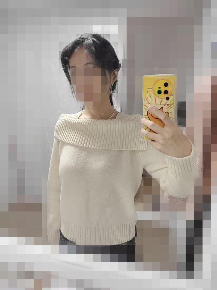 红白一字肩毛衣晒单