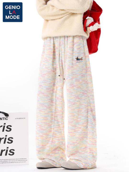 GENIOLAMODE美式刺绣彩虹色腊肠狗糯米裤男女春秋款宽松直筒休闲