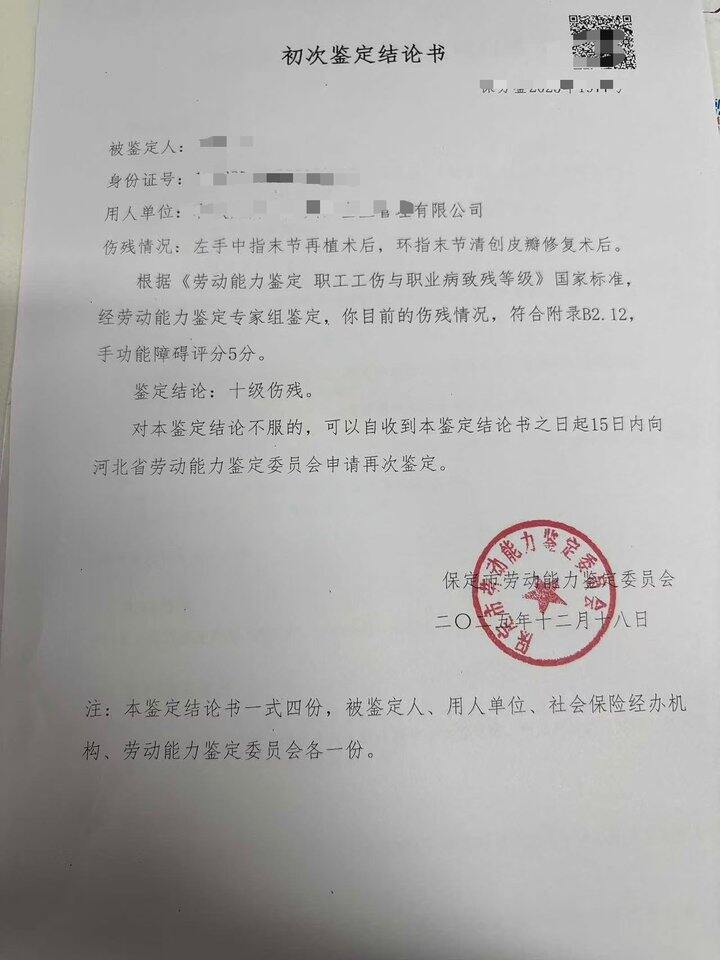 河北工伤十级