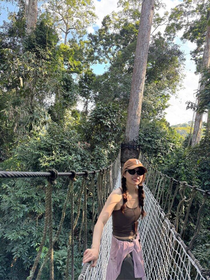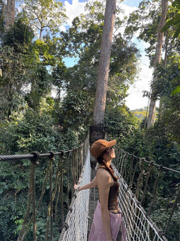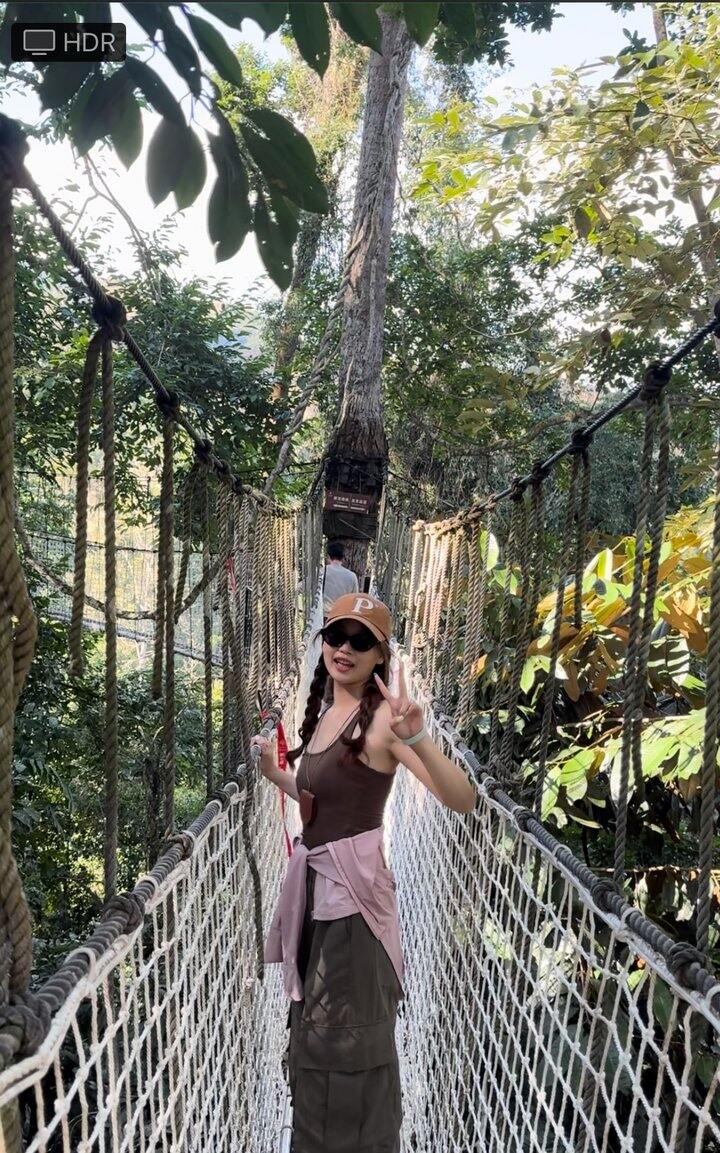 9张之后太难传了,重新发一个,树冠走廊走的时候会晃,感受挺不一样的,别的没啥感觉,高处风景还是不错的,很满意这次穿搭,这个景区人很少,因为离市区太远了,开车要两小时,人不多,边走边拍,哈哈哈