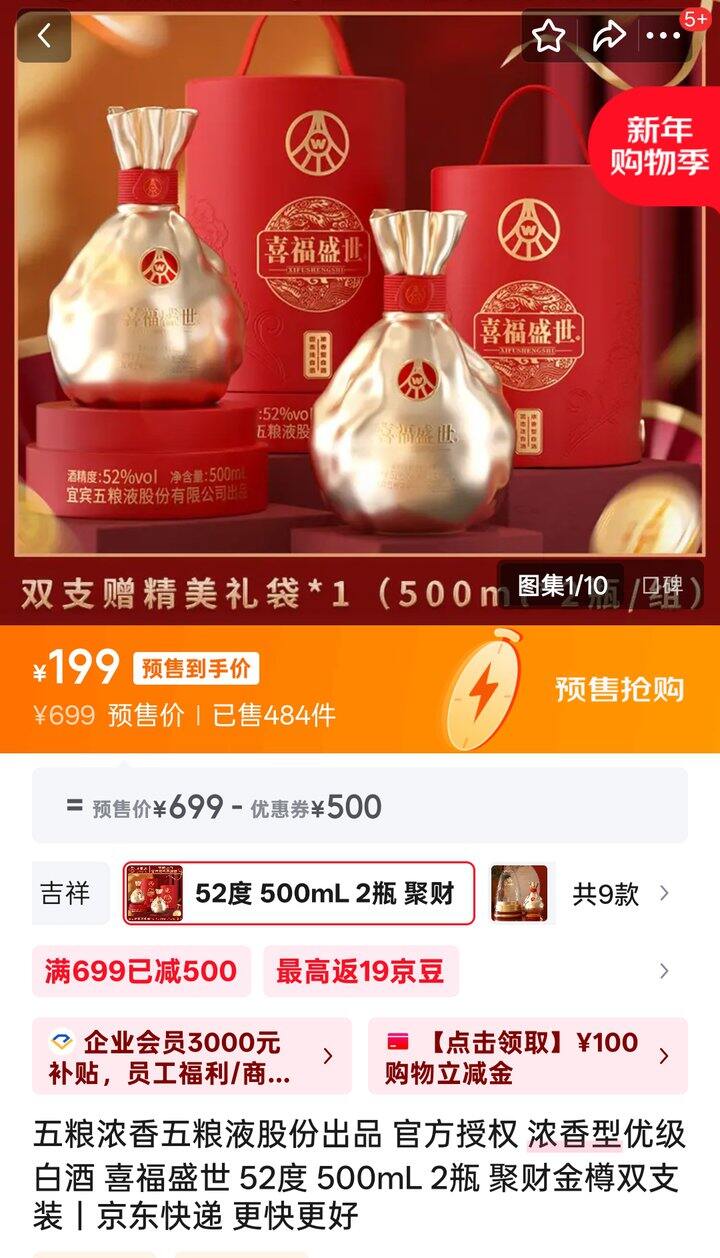 五粮液股份出品 浓香 喜福盛世聚财金樽双支装