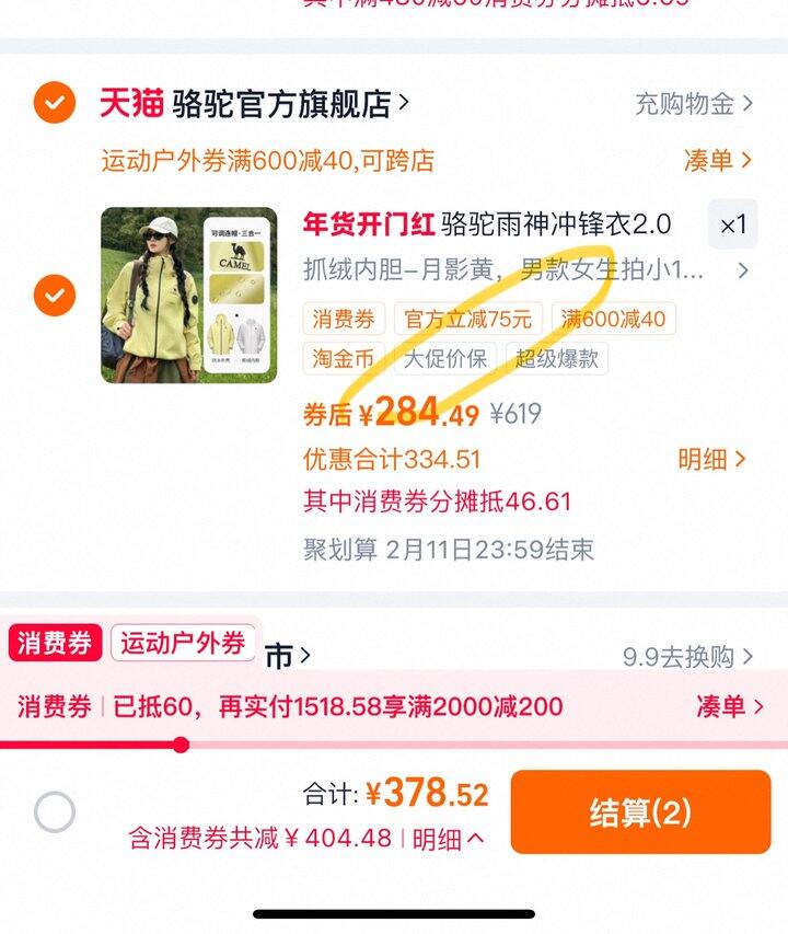 1,骆驼雨神冲锋衣2.0版三合一https://m.tb.cn/h.77YeYOk
