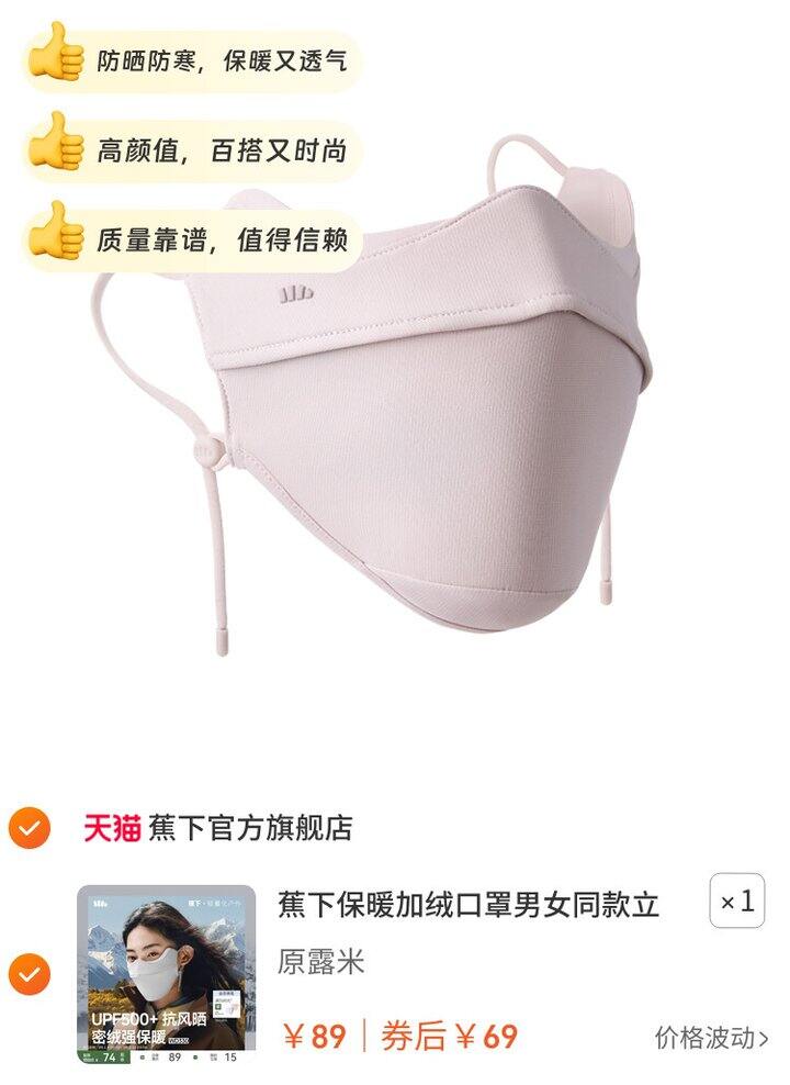 1、蕉下保暖加绒口罩冬天防风防紫外线