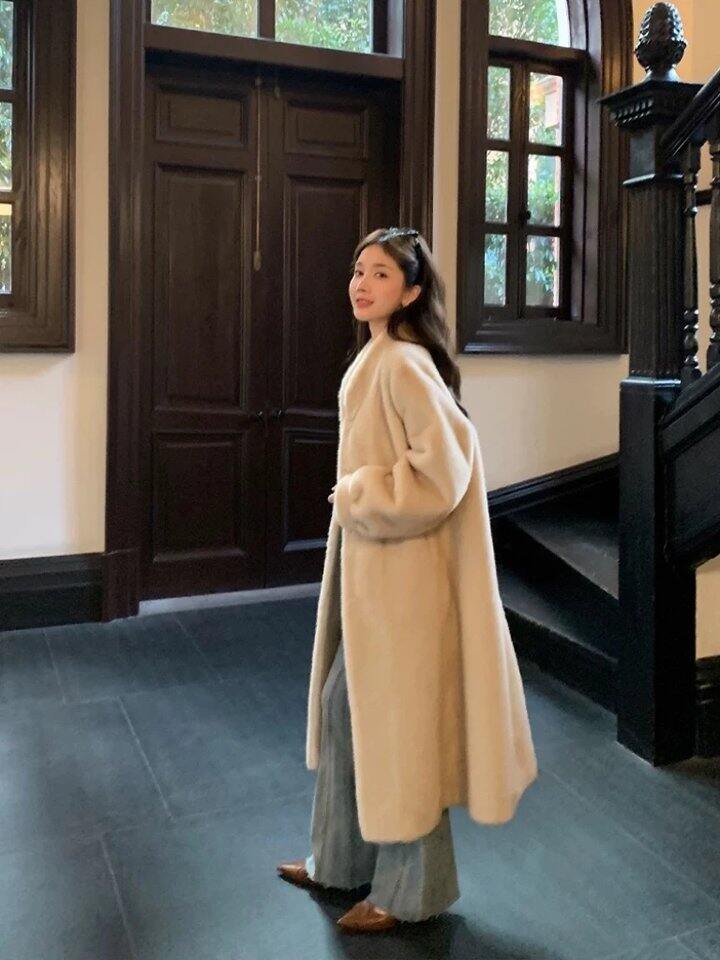 种草了长款仿毛毛外套!可能是因为我今年也买了尖头靴 哈哈