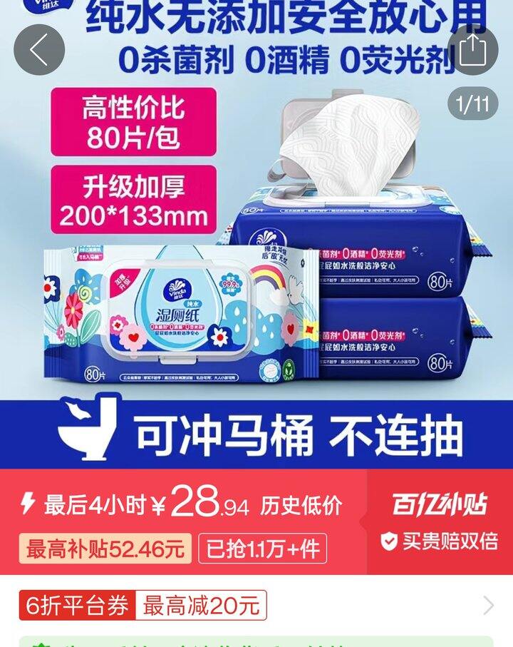 🍎维达湿厕纸维达多巴胺湿厕纸4.15/80抽