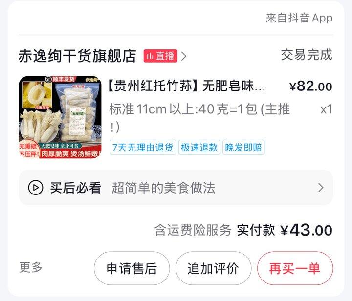 6️⃣,红托竹荪看苌俊俊视频被种草的,我可太喜欢俊俊这种吃嘛嘛香的小孩啦🥰(哈哈顺便夸一下我闺女也超爱吃饭),普通的竹荪有肥皂味需要去掉伞盖,但是!红托竹荪没有!连伞盖都可以吃,里面➕虾滑,炖出来的汤汁很鲜美。唯一的缺点就是贵,我买的43块钱14个,划下来3块多一个。