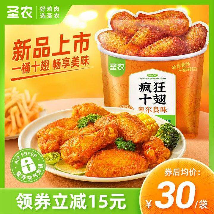 圣农算路口老牌子了吧,几年前我就见官方团过,不过那会没买空气炸锅就没试过。最近买过它家洋葱圈(一般)、鸡块(无功无过我女儿偶尔会吃一两块)、炸鸡(面多肉少很油很难吃)、烤翅,目前只有烤翅是我无限回购的,到现在已经回购四五次了,属于快吃空就会补充的那一类。因为是用空气炸锅炸的,不会很油,冬天吃起来也没有负罪感,完美!
