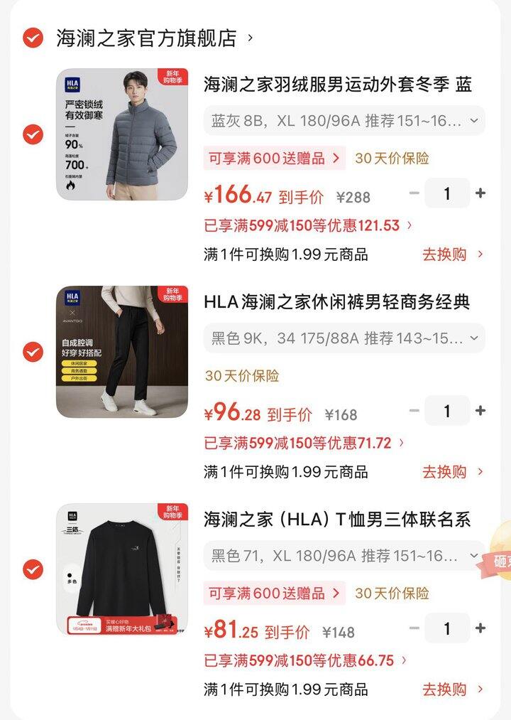 海澜之家 羽绒服✖️3件💰344