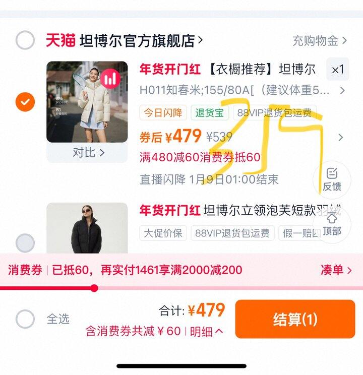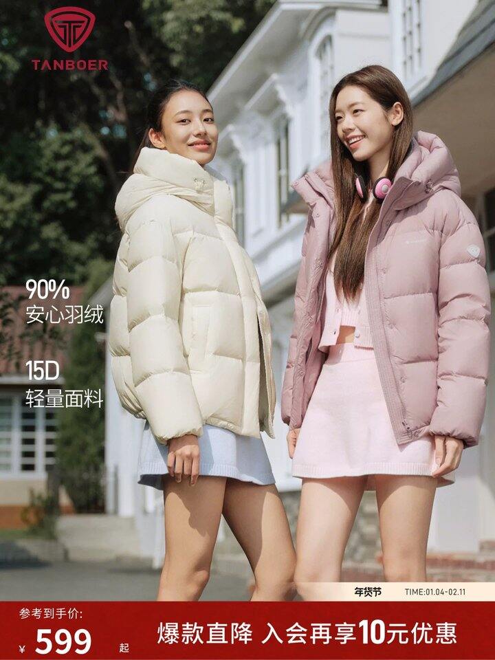 1,坦博尔25冬季新款羽绒服女短款保暖连帽