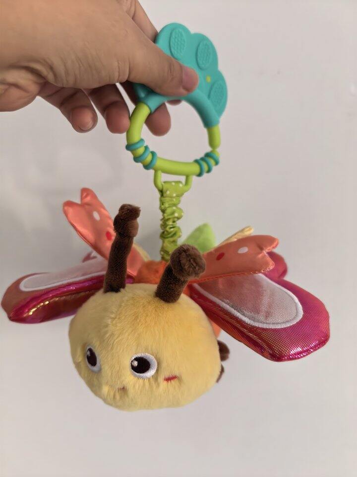 拍一拍就会振翅,播放音乐,上面挂钩部分还能咬一咬,洗的时候能把音乐盒拆下来,不错不错