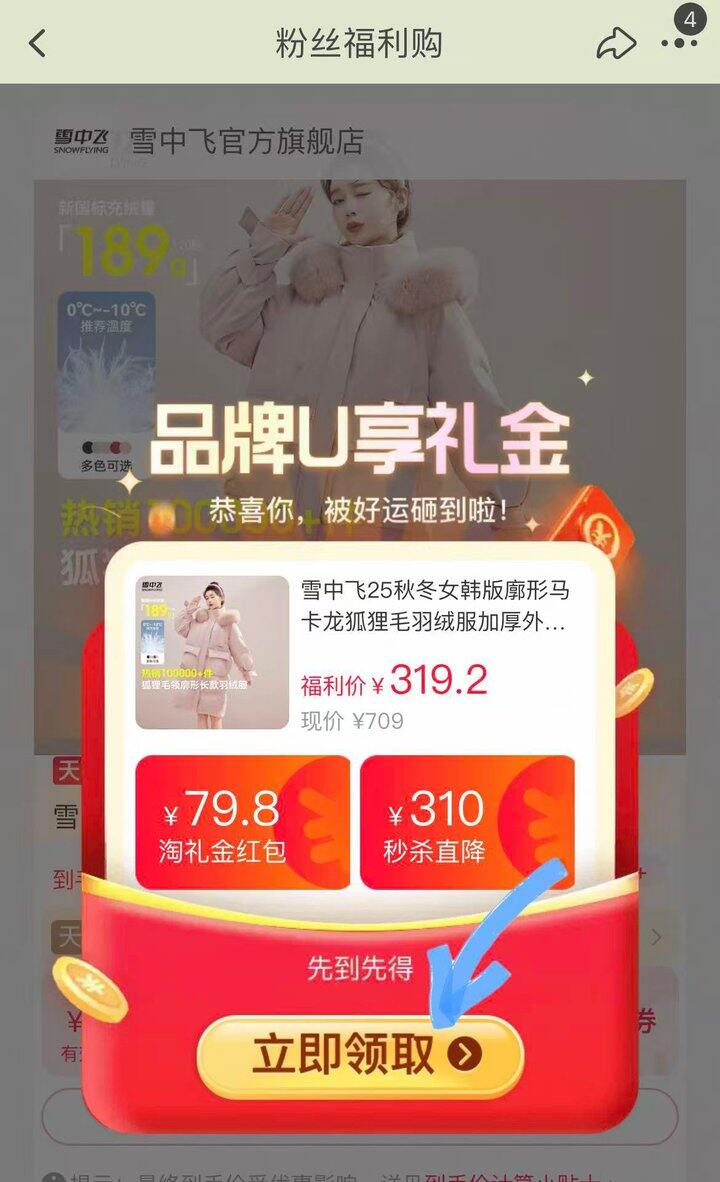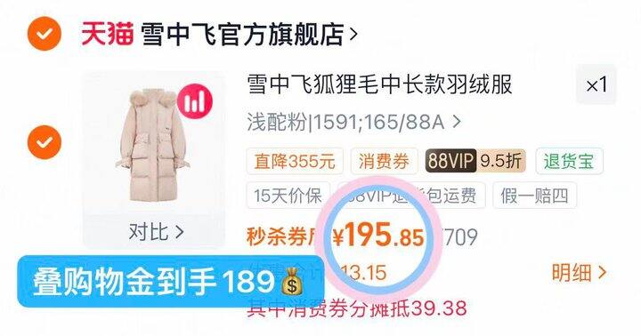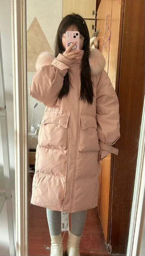 189💰雪中飞狐狸毛领中长羽绒服