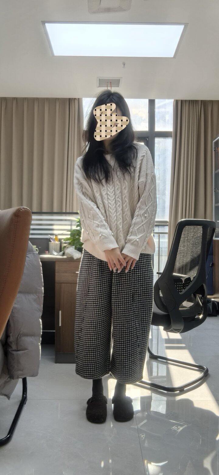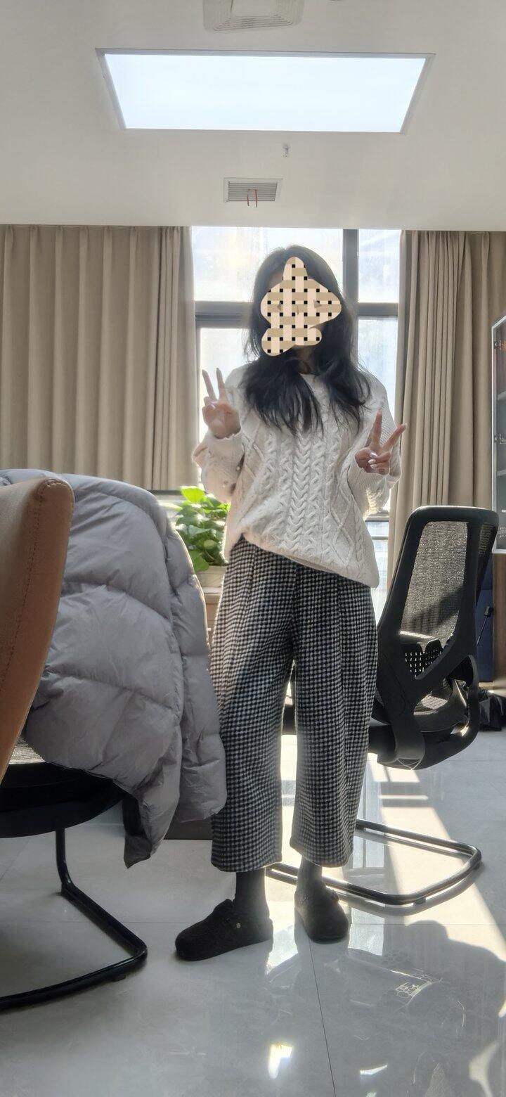 新买的格子裤不知道咋搭 早上急急忙忙套了件毛衣 等有空了细细研究下咋搭
