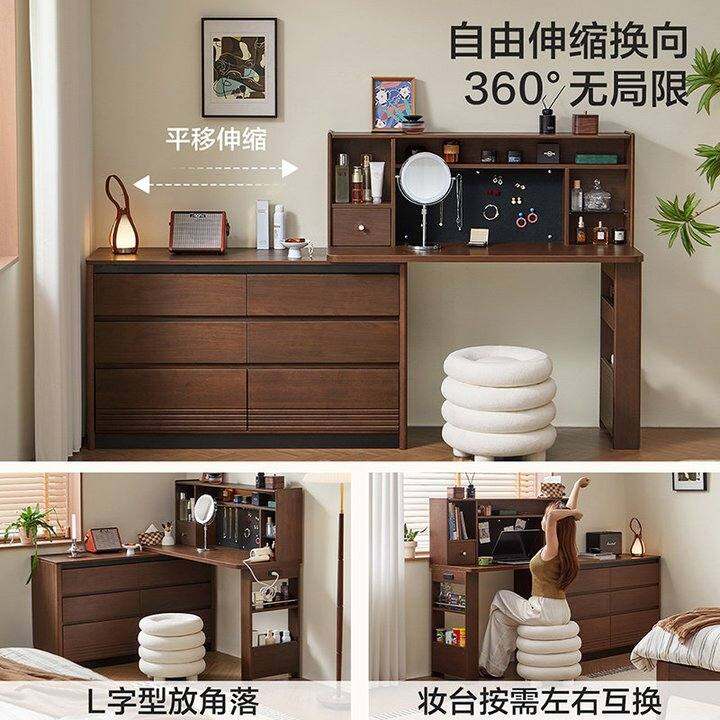 林氏家居复古梳妆台斗柜一体收纳柜小户型主卧l型转角化妆桌塔塔