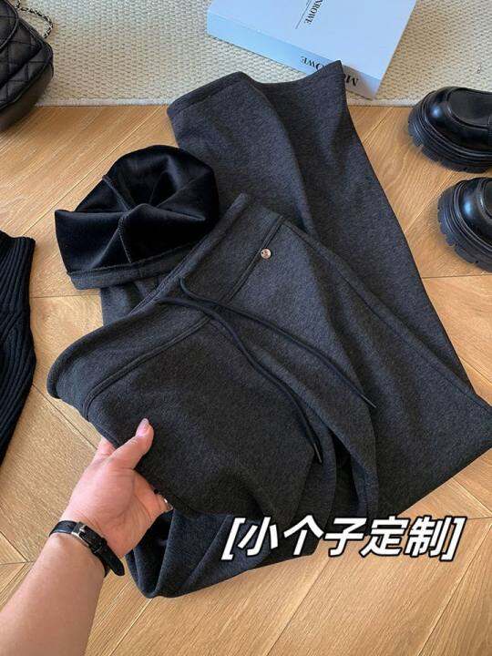 秋冬美式高腰微喇裤女150小个子时髦瑜伽裤显瘦抽绳加绒运动卫裤