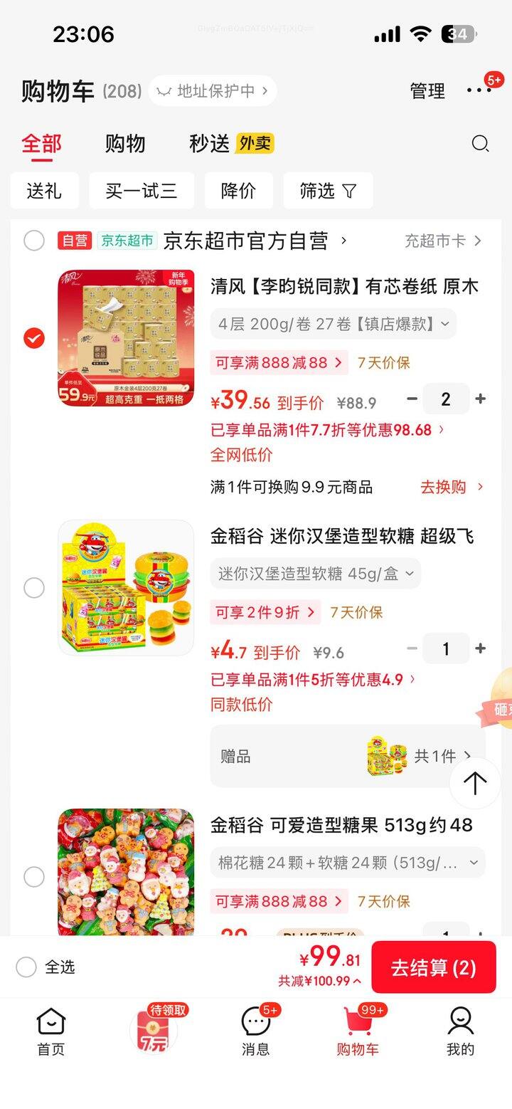 清风200g大克重卷纸到手79.2,共54卷
