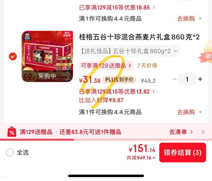 2个凑单,桂格9,其他1,