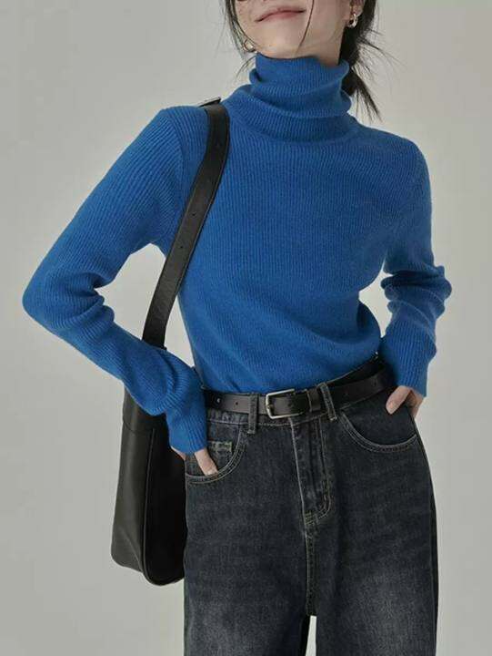 克莱因蓝高领针织毛衣女秋冬叠穿长袖修身显瘦内搭打底衫洋气上衣
