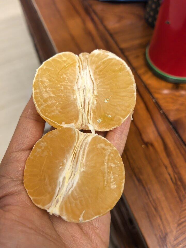 这个甜心桔柚也是第一次吃,好吃,纯甜,就是外皮有点硬,用刀划拉下再手剥好剥~