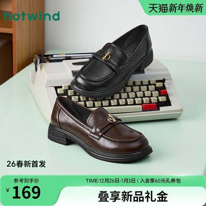 热风黑色小皮鞋女款2026年春季新款英伦风通勤乐福鞋百搭女鞋单鞋