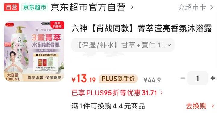 六神大瓶沐浴露 Plus到手13.19,合适的❗