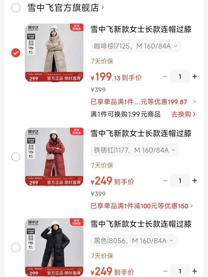 199🉐雪中飞女过膝羽绒服,高倍充绒