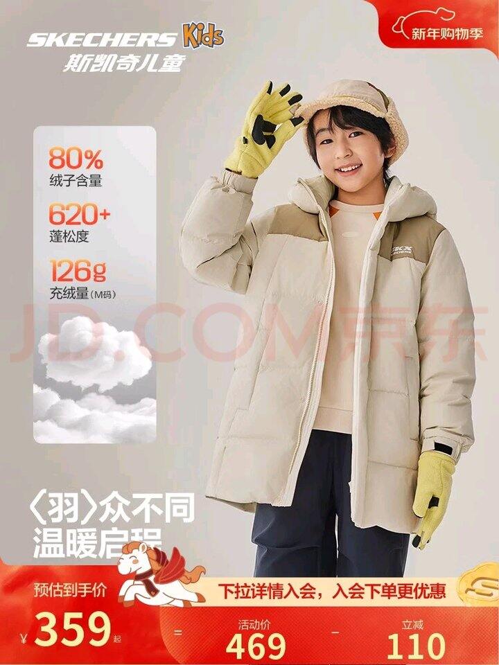 [闪耀]Skechers斯凯奇儿童中长款羽绒外套
