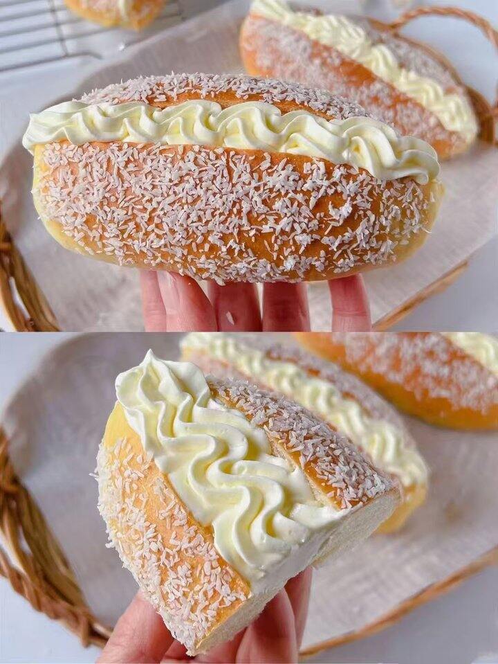 口感柔软🍞一口咬下,满满的椰蓉奶油香气扑鼻而来~