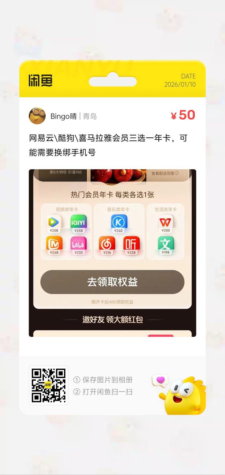 音乐类年卡三选一(酷狗/网易云/喜马拉雅) 50r