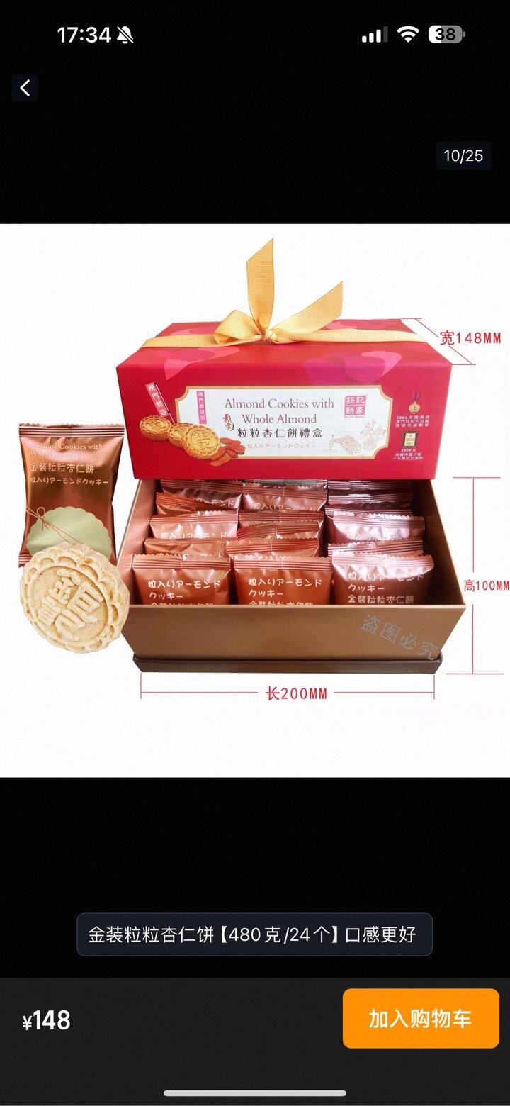⬇️淘宝搜了一下,有点贵,现场是 128 澳门币,然后两盒再打 88 折。还有其他款的,说是机打的,这个金装礼盒是手作比较贵。