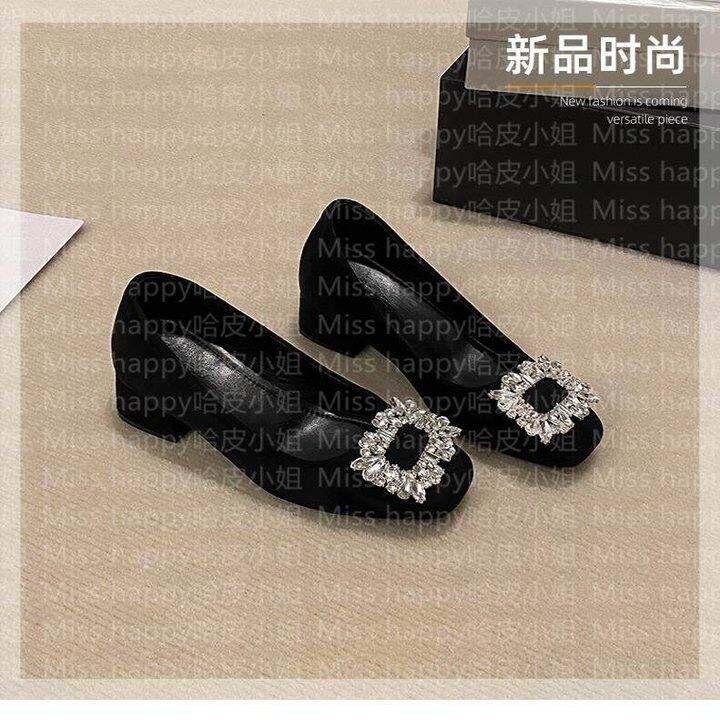 小个子内增高7cm粗跟方头水钻单鞋女通勤气质玛丽珍晚晚粗跟鞋子