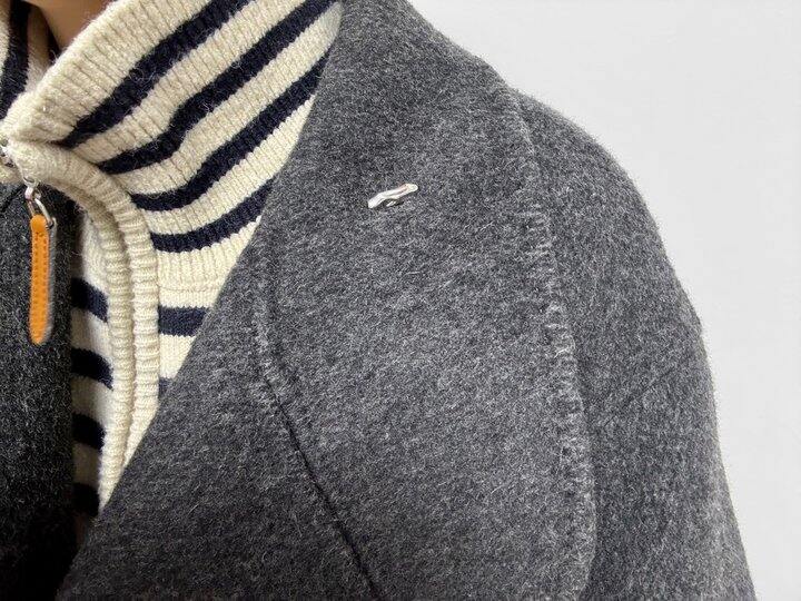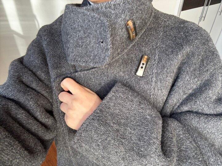 之前买的茵曼大衣,内里用的廉价的透明塑料扣,不扣衣扣时看着很突兀,于是用之前做手工的金属珠子替换了,这样像胸针一样,看着顺眼多啦