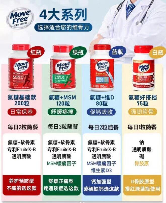 ❷益节Move Free氨糖维骨力软骨素关节绿标氨糖120 x 2,