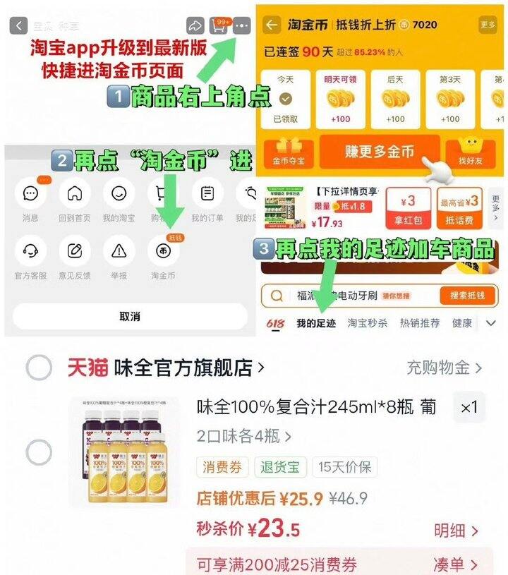 💰23.5,右上角进“淘金币”拍~味全100%复合汁245ml*8瓶