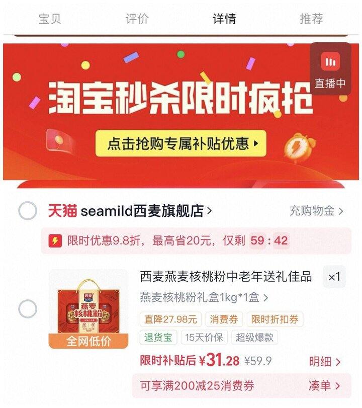 弹店铺🧧下拉拍31‼西麦燕麦核桃粉礼盒1kg