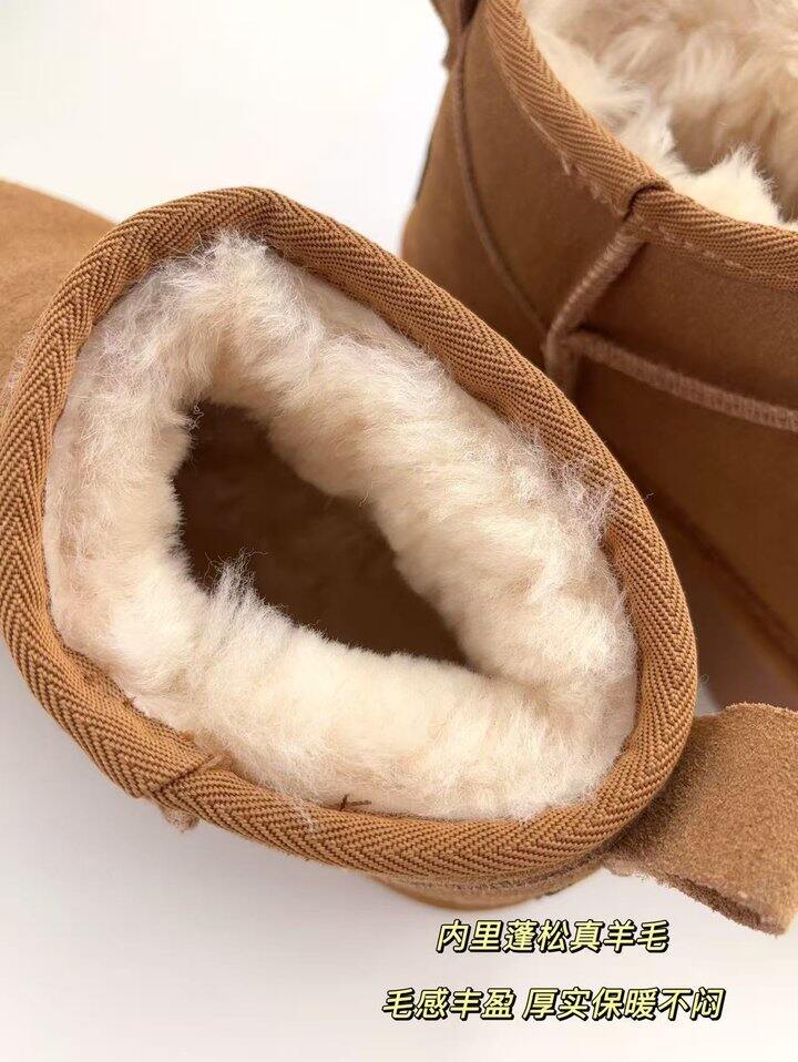 注意:鞋口一圈是真羊毛,内里是人造毛,帮面真皮,